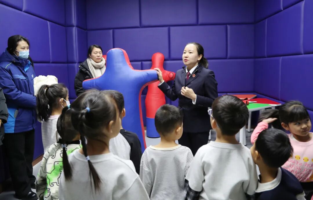 活动中,在未成年人查看工作办公室的查看人员引导下,师生及家长代表顺次观赏了未成年人查看工作办案区的模仿法庭、心思引导室、心情发泄室及沙盘游戏区等功能场所。在模仿法庭,查看人员用童趣化言语解说庭审流程,教师、家长们直观感触法令的庄重与威望;在心思引导室和心情发泄室,我们探究到查看机关怎么通过专业手法为未成年人缓解心思上的压力、修正心灵伤口;沙盘游戏区则让家长们深入认识到心思健康对幼儿生长的重要意义。